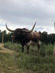 This bull takes a lot after his sire, he has a deep brindle color that is hard to miss in the pasture. His pedigree boasts several industry legends. A great young bull all around.