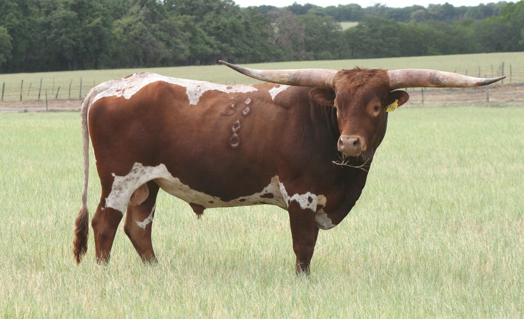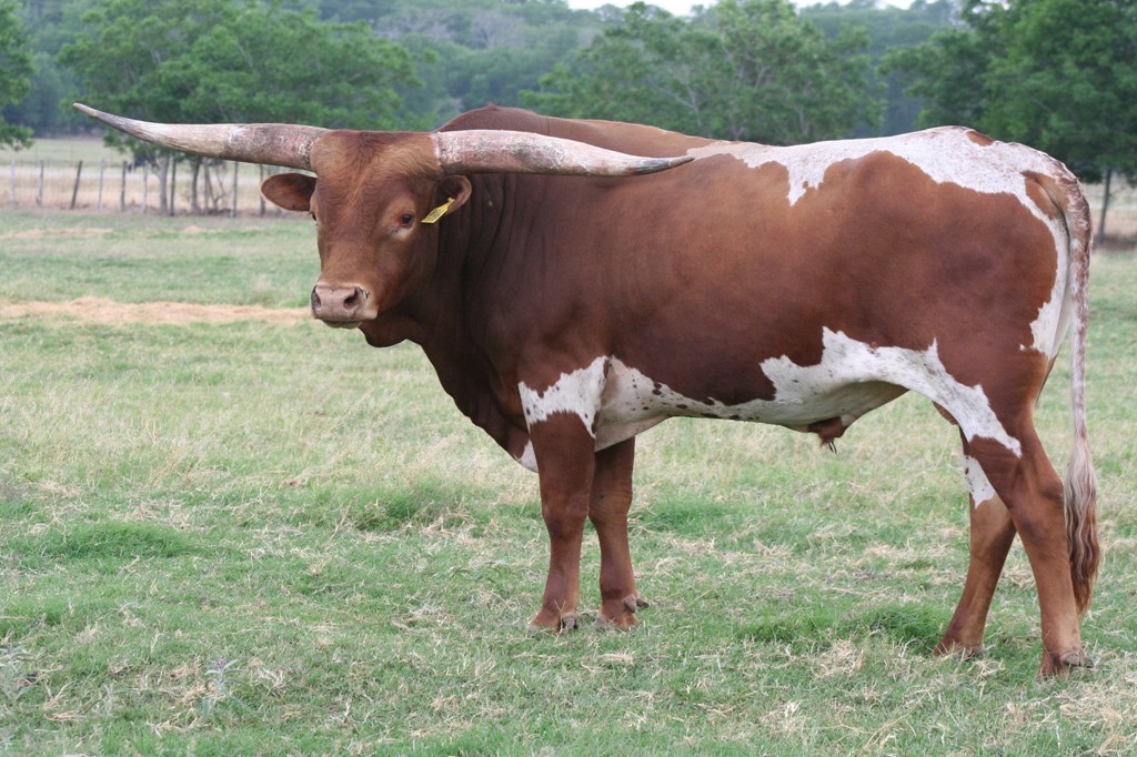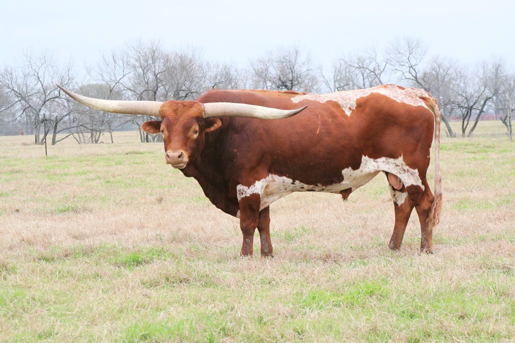 A big bodied bull with great color who throws the red and white color. The Gunman and Boomerang combination produced the big horn bases and currently nearly 84" tip to tip. His dam sold for $98,000 at the Legacy Sale.