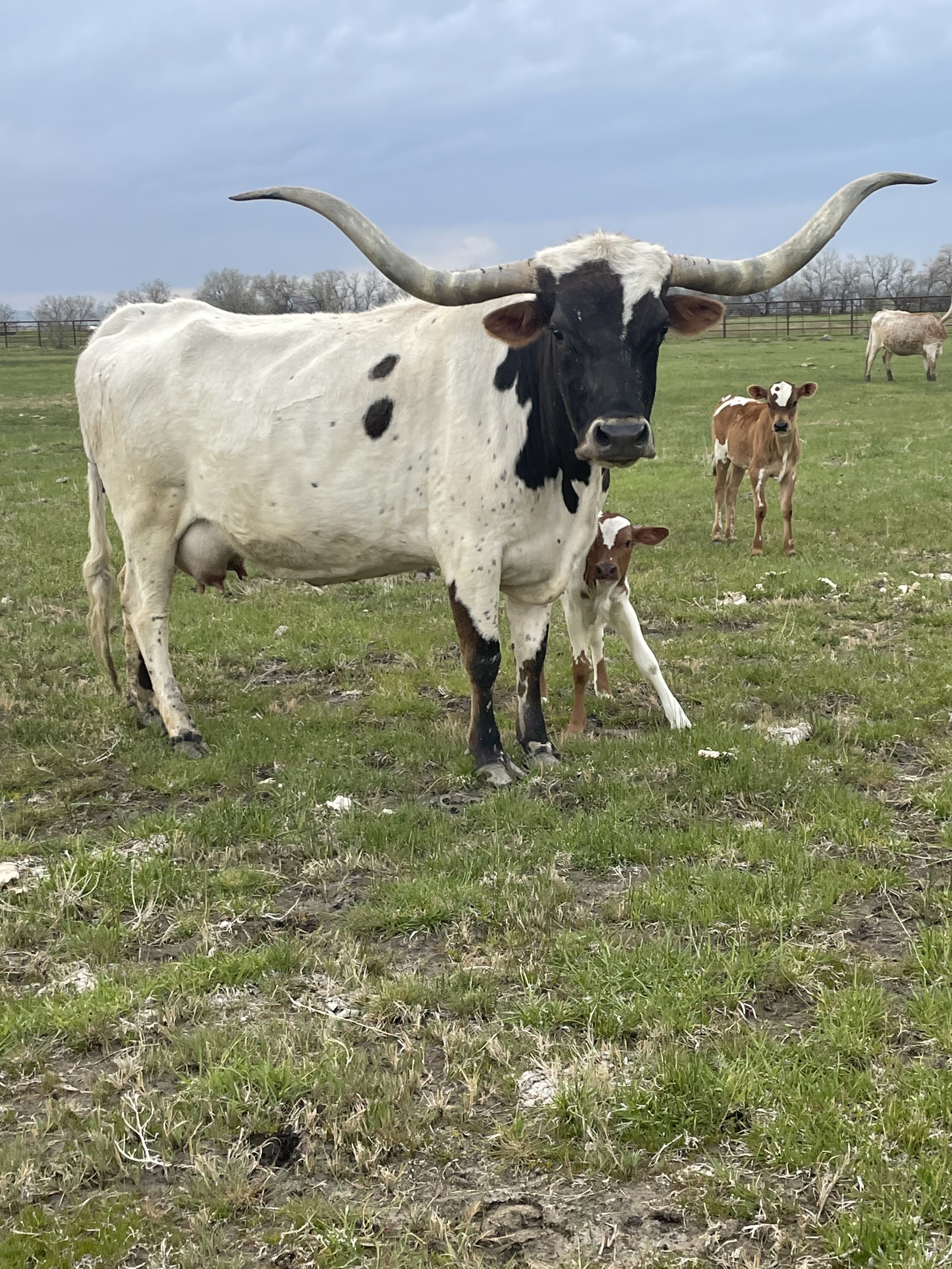 She is out of our AI program, we are using quality big bulls with the best pedigree's and allot of color and horn to improve our herd.