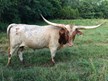 SOLD! Extremely gentle herd sire. WS Jamakizm x JP Grand Susan 2. He's a genetic winner. Brindle and roan. This guy throws the most beautiful brindle, brindle & white, and tri-colored calves.