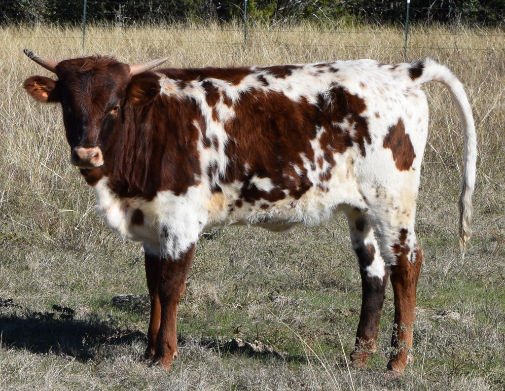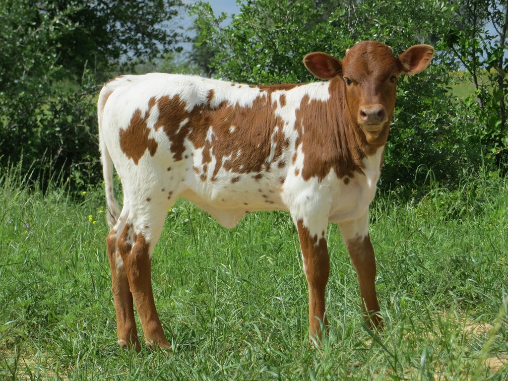Brindle, gentle beauty consigned to the 2017 Hudson-Valentine Stockyards Sale. On 9/30/2017 she blessed us with her first calf, a gorgeous heifer by the award winning young bull, Expedite, owned by the Jones/Loomis partnership.