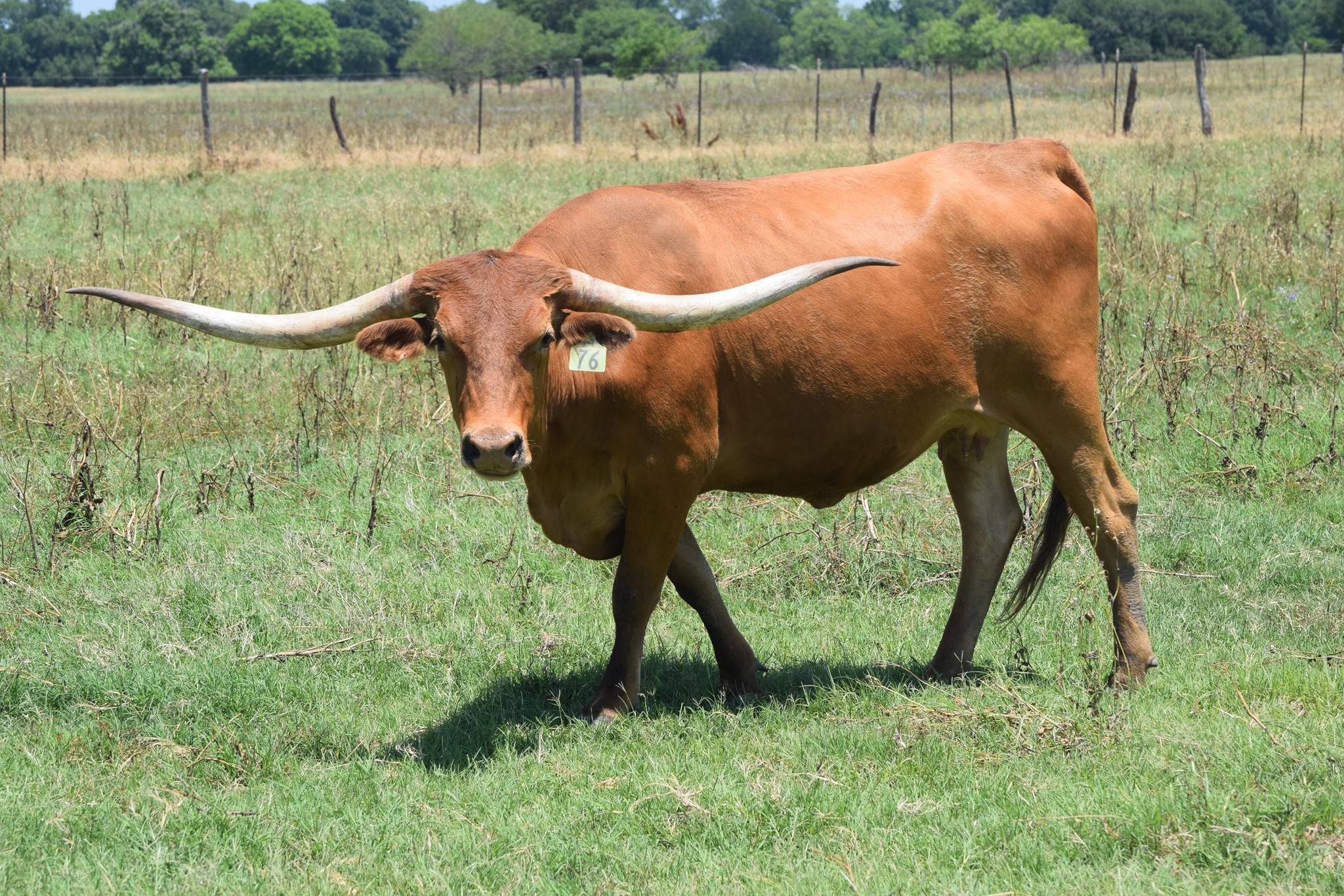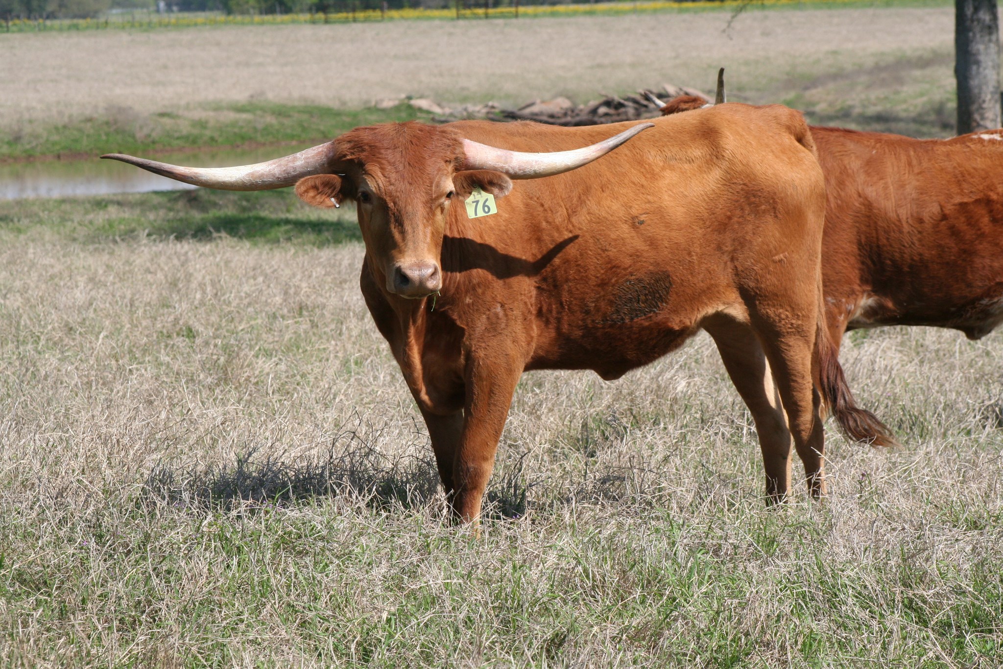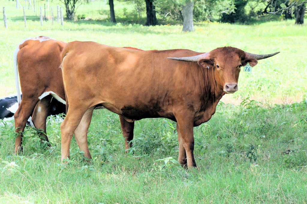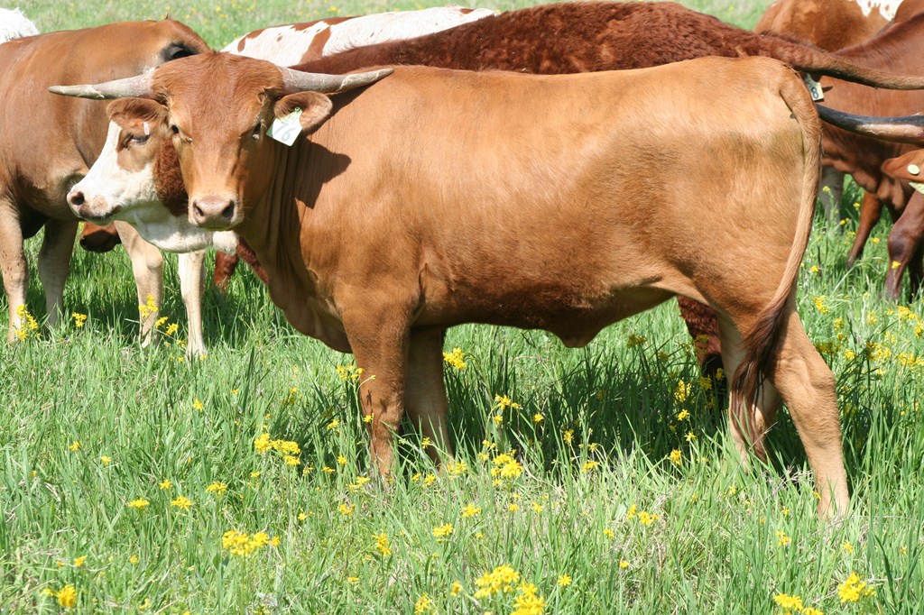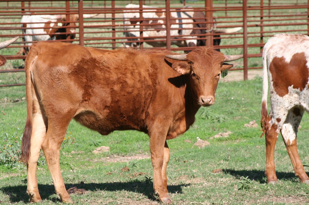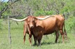 Ranger daughter with good confirmation and a beautiful flat twist. She has a Brazos Tuff Cowboy bull calf at side.