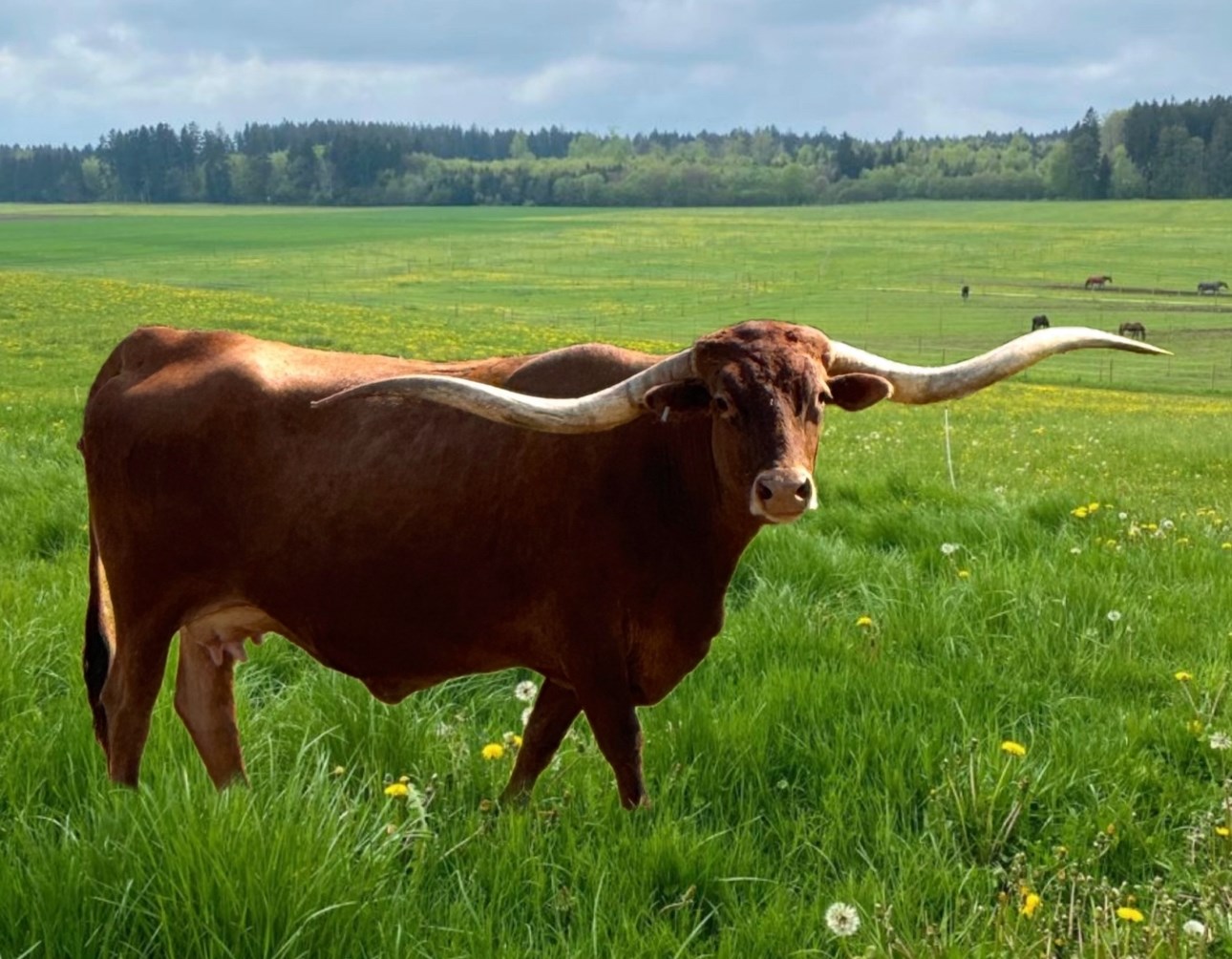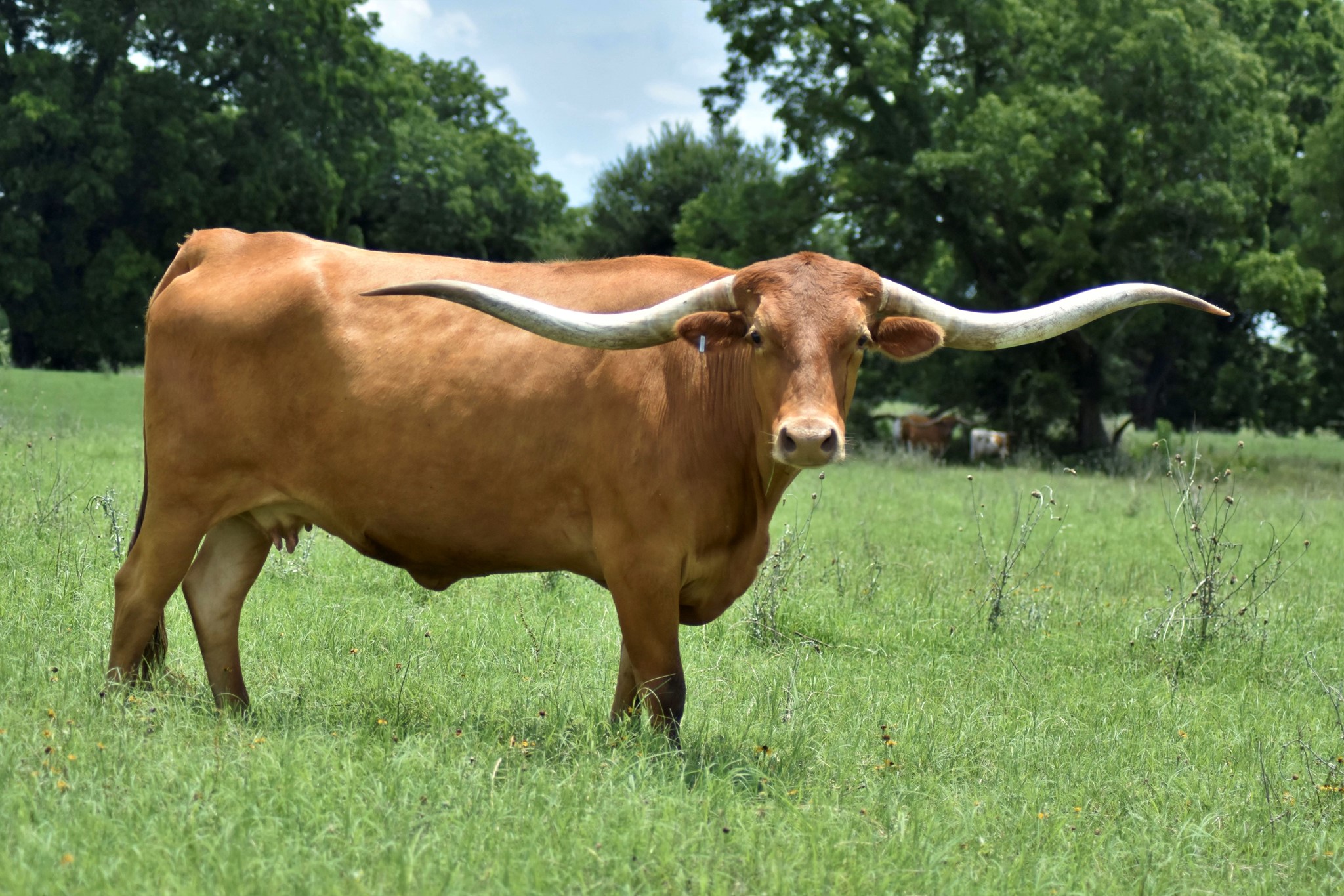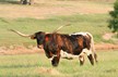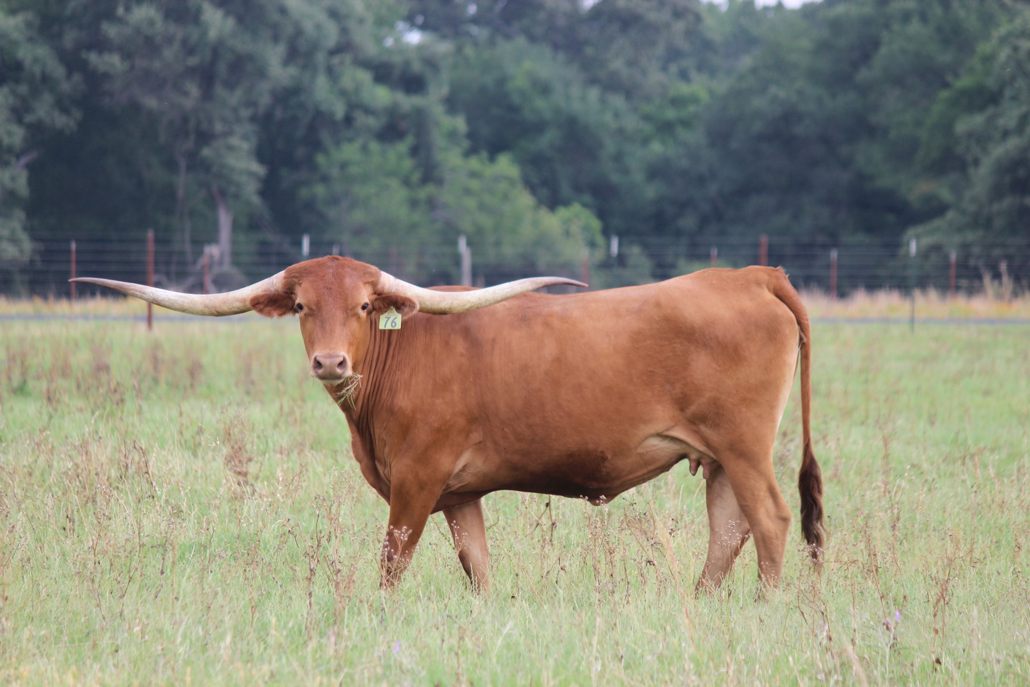 Ranger daughter with good confirmation and a beautiful flat twist. She has a Brazos Tuff Cowboy bull calf at side.