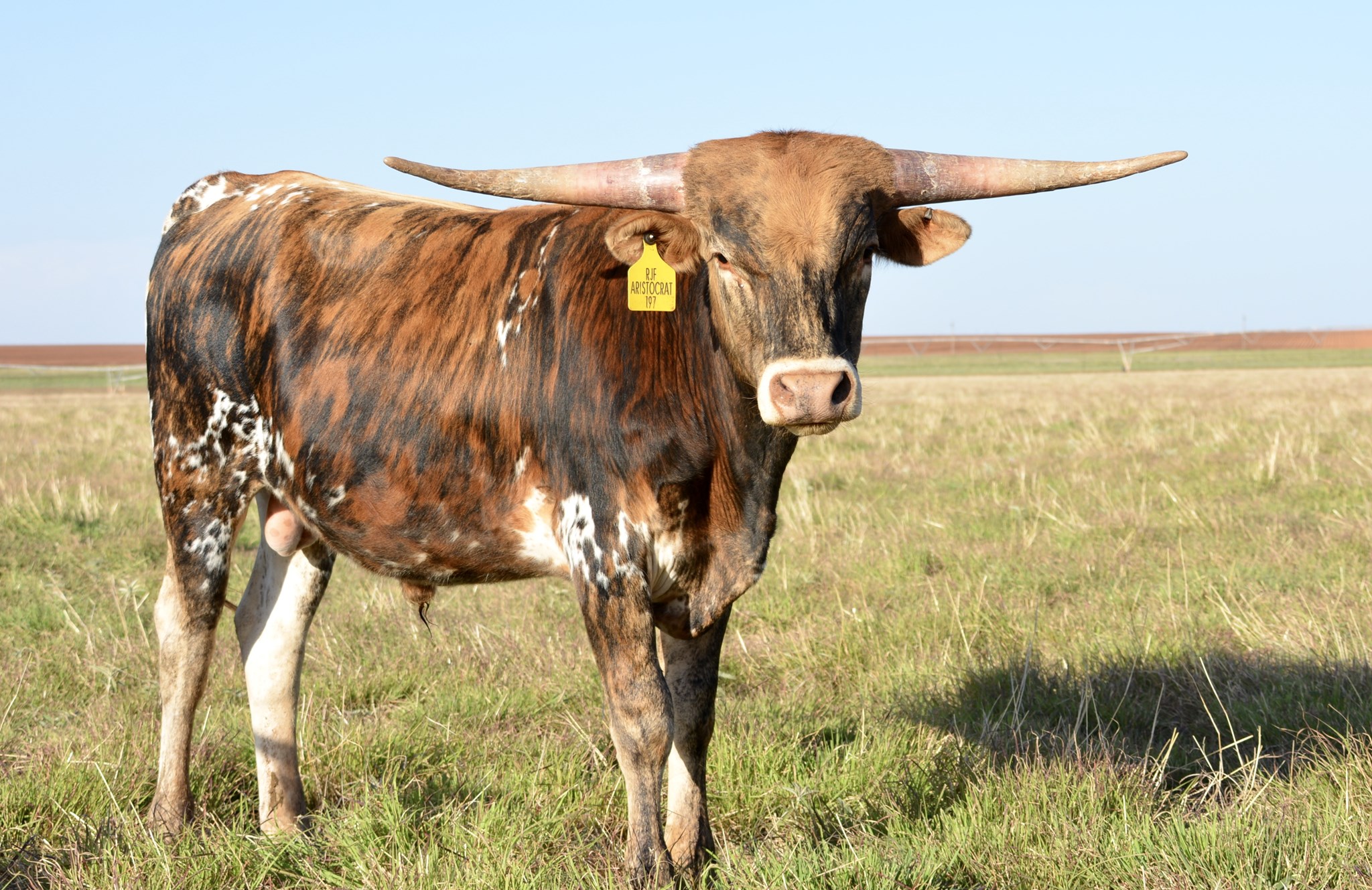 Aristocrat is sired by 83" TTT, Archer Texa (broke horn back to 78.75" TTT), who is a son of 81.50" TTT, Jamakizm, and 86.8750" TTT, Texana Van Horne. His dam, 77" TTT, RJF Sassy Cowgirl, is a daughter of 84"+ TTT, CV Cowboy Casanova, and 71.75" TTT, RJF Sweet and Sassy, who is a daughter of the awesome horn producing, 76" TTT, J.R. Sassie who is a daughter of 77" TTT, J.R. Lassie. There are 16- 70's and 9- 80's in his pedigree. Top of the breed genetics on top and bottom.