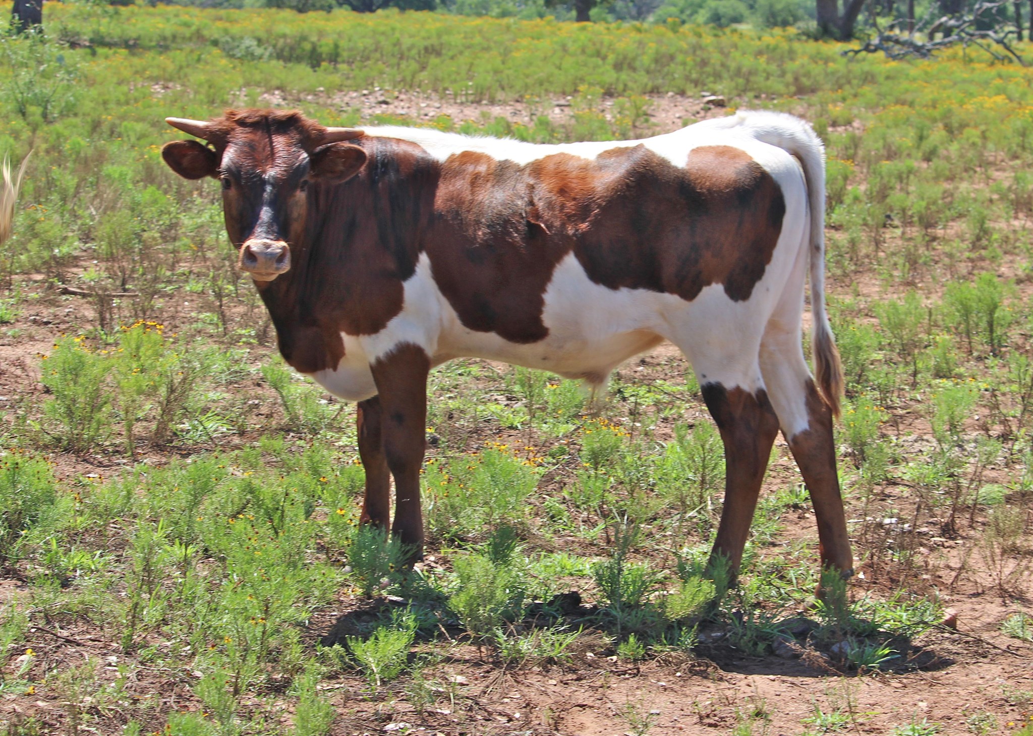 BRINDLE ON SIDES, HEAD, AND LEGS, WHITE ON TOP LINE AND BELLY