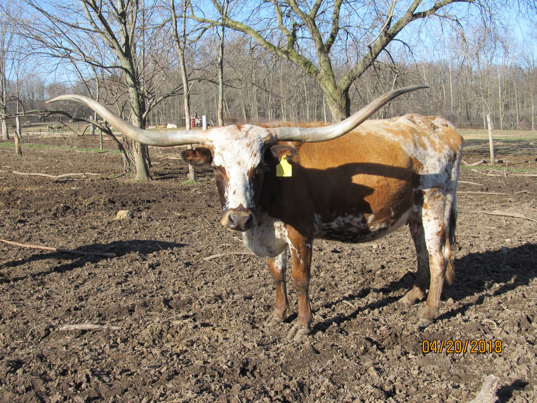 Ribbette is our longest tip to tip cow and is one of the first we purchased. She has given us another heifer this year and we couldn't be happier with how she raises her babies. Ribbette has our hearts and this is her forever home.